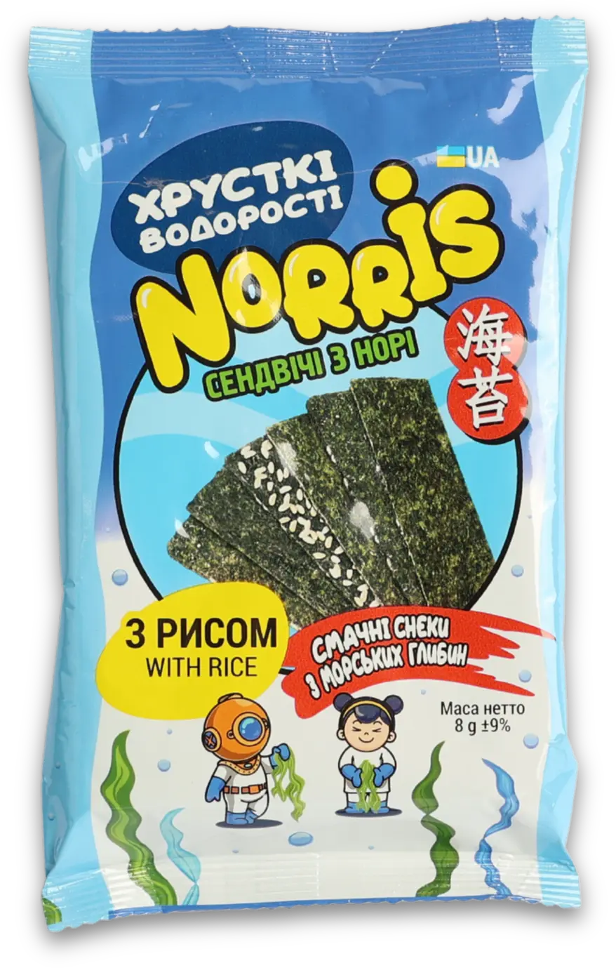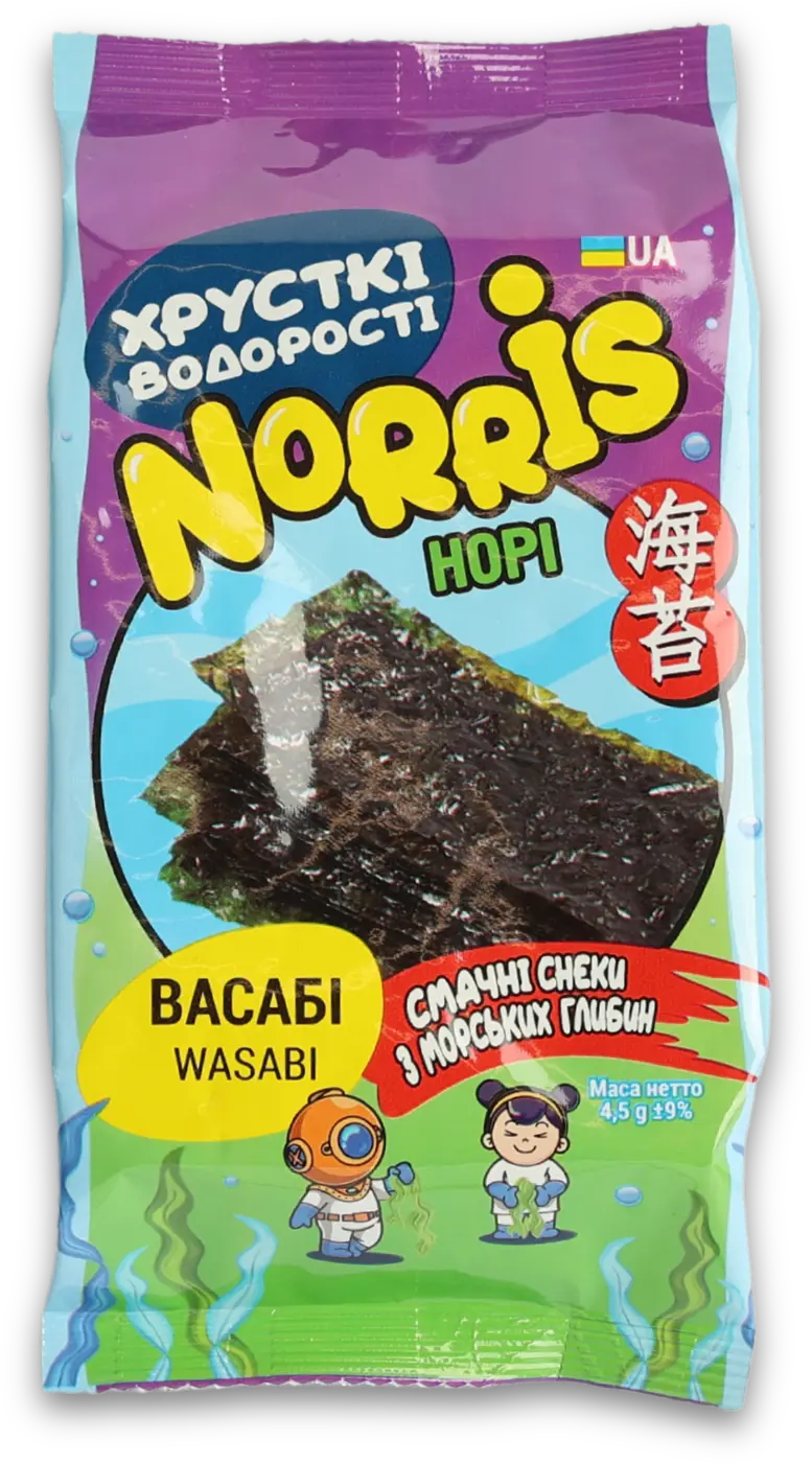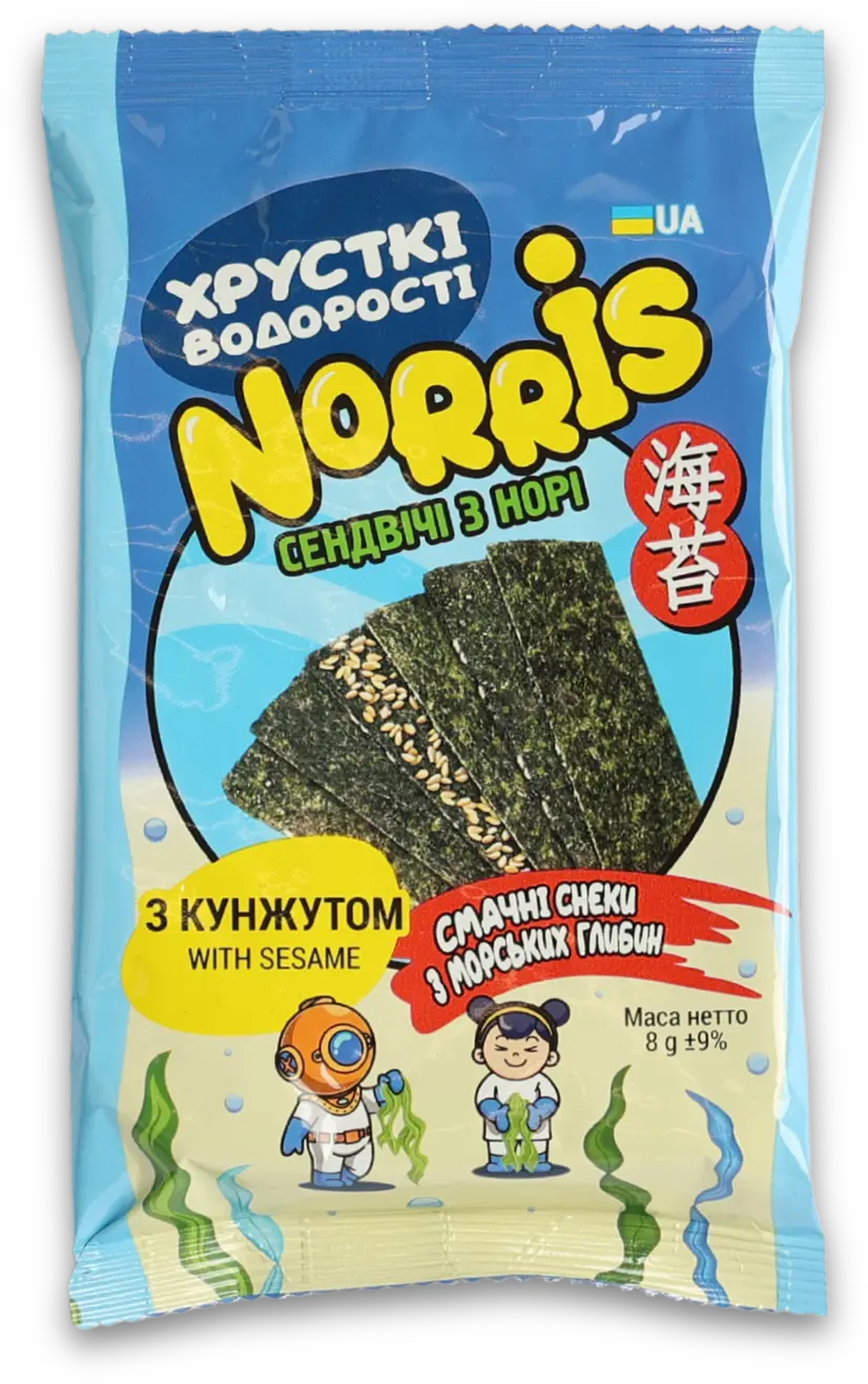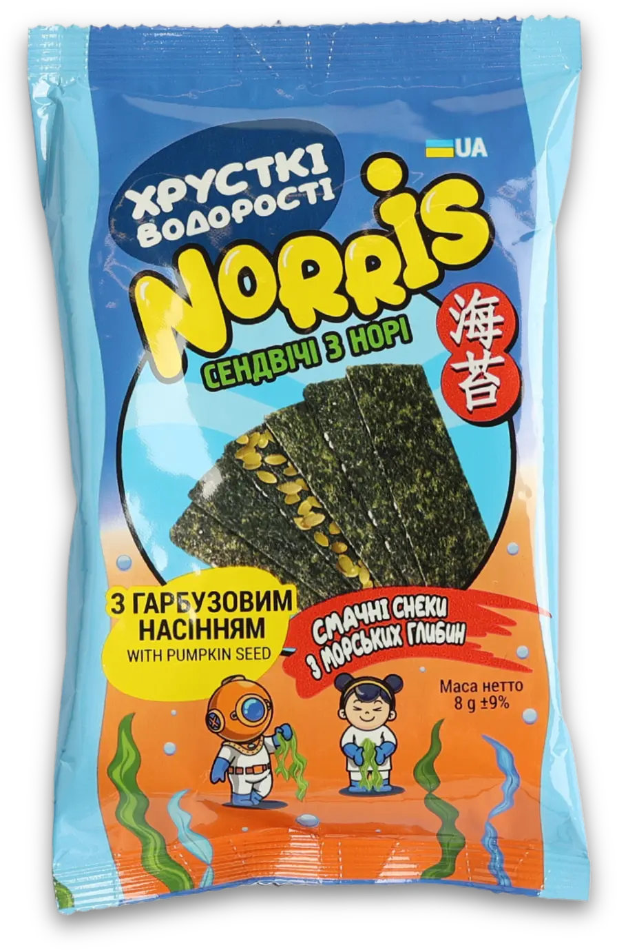 Norris спеціалізується на виробництві різноманітних снеків із морських водоростей норі. Асортимент постійно розширюється новими та незвичайними видами продукції.