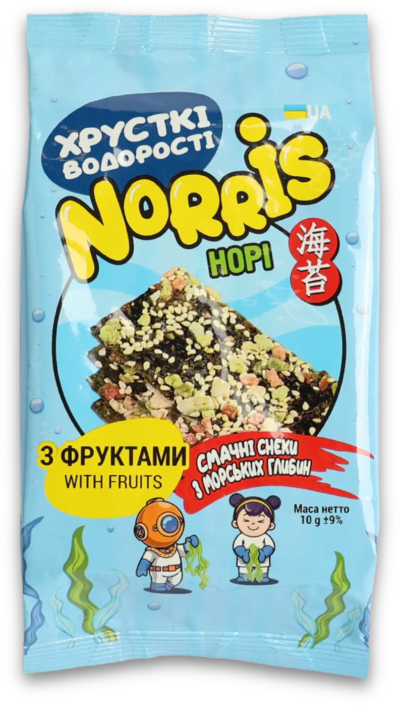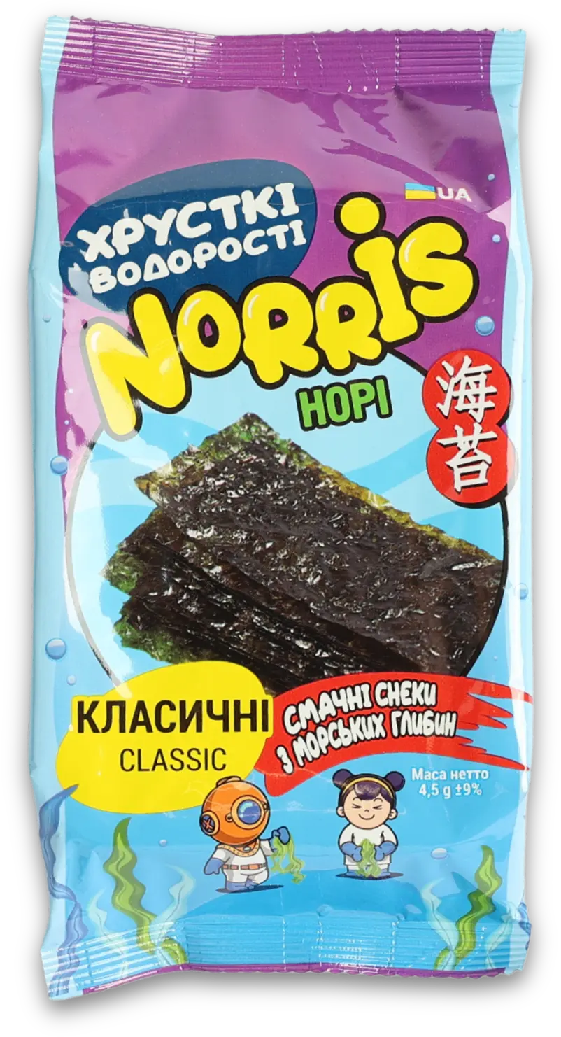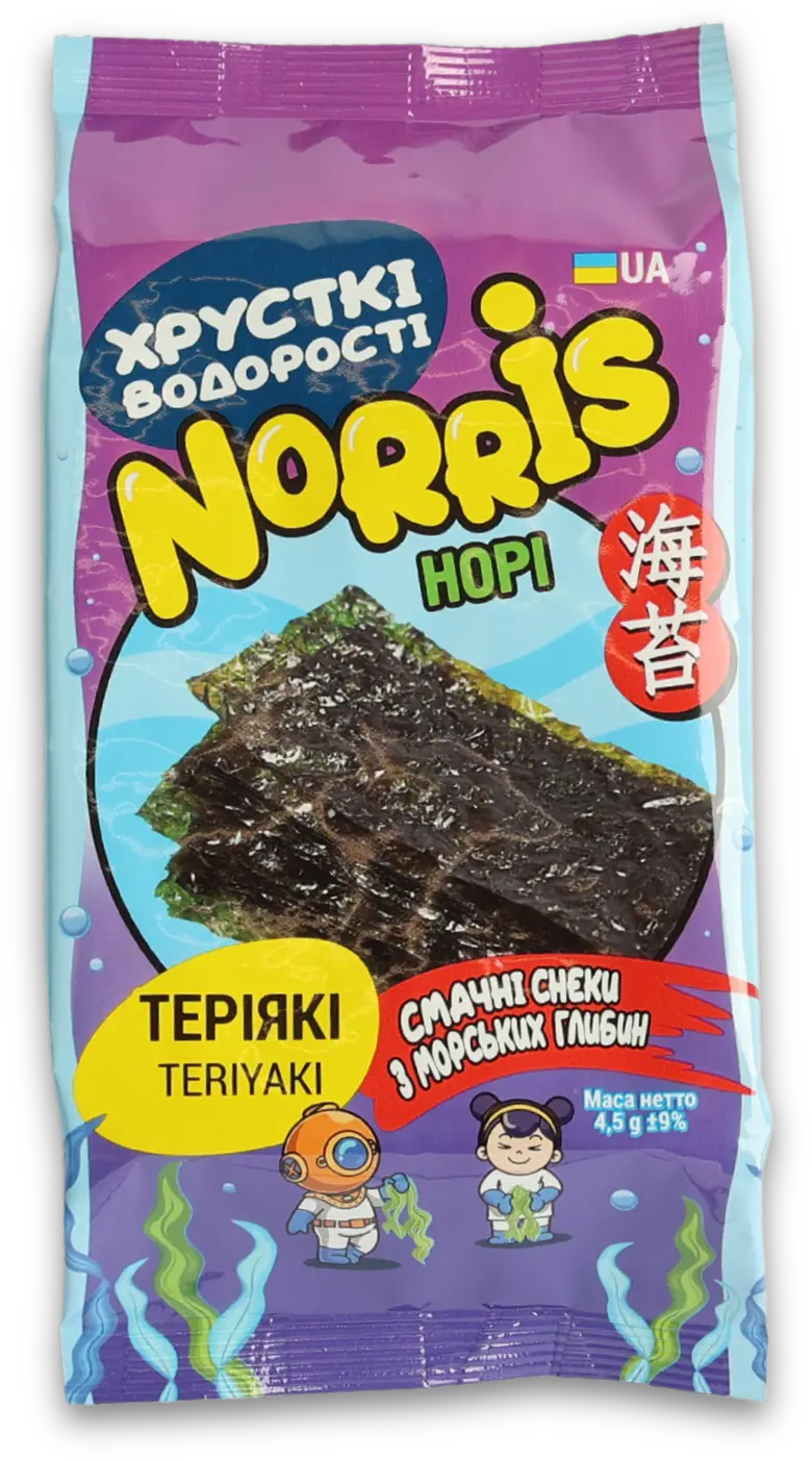 Norris спеціалізується на виробництві різноманітних снеків із морських водоростей норі. Асортимент постійно розширюється новими та незвичайними видами продукції.